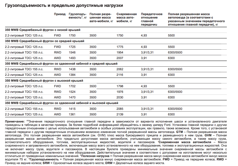 1 Максимальная величина уклона не должна превышать 12 % 2 Полезная нагрузка = полная разрешенная масса минус снаряженная масса 3 Приведено минимальное значение снаряженной массы автомобиля, соответствующее допускам на его изготовление и учитывающее массу эксплуатационных жидкостей, заправленного на 90 % объема топливного бака и установленного на автомобиль оборудования