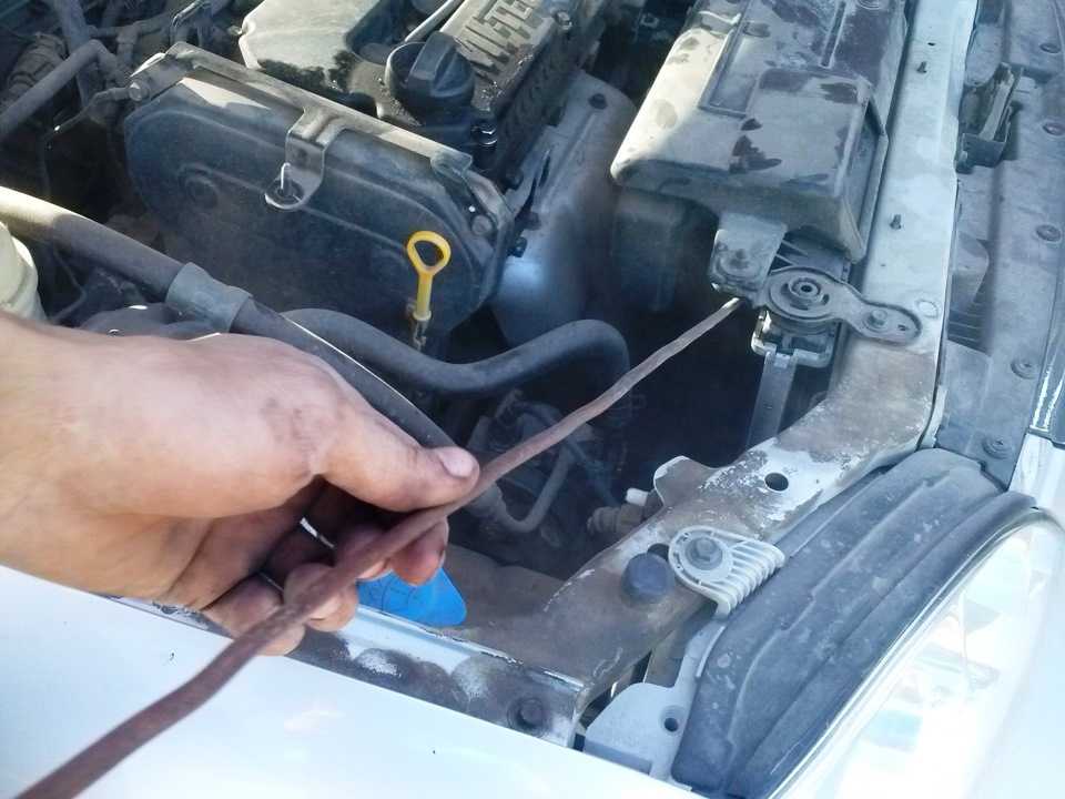 Наполняем расширительный бачок, между отметками L и F на щупе. Ставим крышки на заливные отверстия и запускаем двигатель. Ждем пока включится вентилятор. Если все сделано правильно, то воздушных пробок образоваться не должно. Печка будет дуть горячим воздухом, а двигатель быстро набирать рабочую температуру, но не превышать ее.