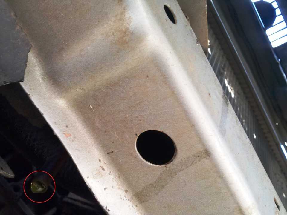 - Первым делом откручиваем защиту. Для этого нам понадобится 2 ключа на 17мм. Спереди, гайки приварены к кузову, поэтому болты просто откручиваем. А вот сзади, гайки не приварены, поэтому одним ключом держим их, а вторым крутим болты.