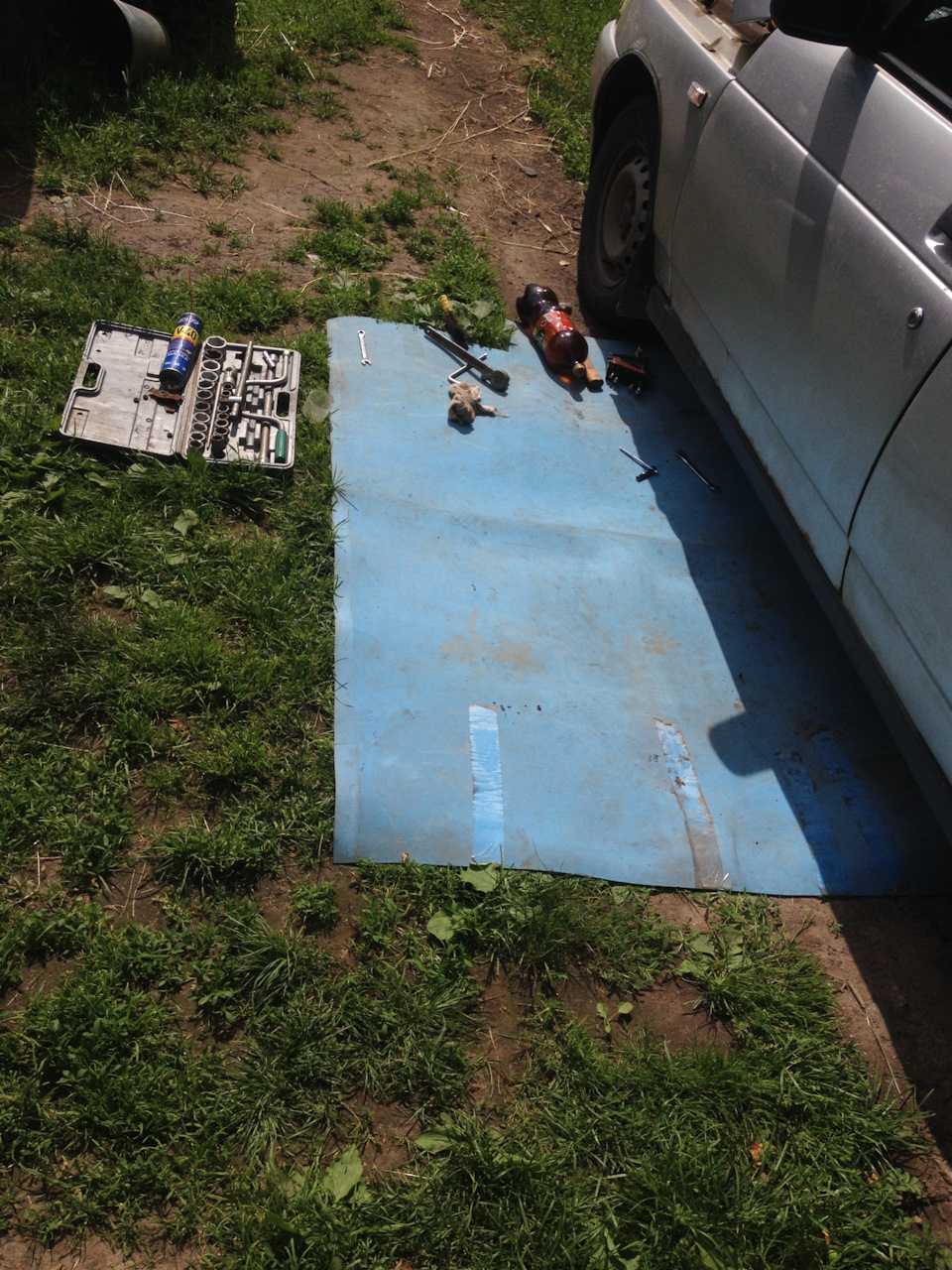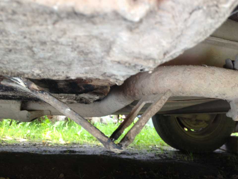 В последнее время .ну недели две наверно, стал замечать что от машины таращит запахом бензина. Ну дело ясное — подумал я, наверняка траблы с сепаратором под задним крылом настигли и мою лайбу. Тем более что задние подкрылки оба порваны. Предпринимать что то особо не хотелось, пары это пары да и хрен бы с ними. И вот в одно прекрасное солнечное теплое летнее утро, идя к машине, я замечаю что чето там снизу у нее мальца провисло на полшестого. Так и есть — пластмассовая лыжа, она же защита магистралей на днище, своим задним загнутым концом оттопырилась в сторону земли-матушки.