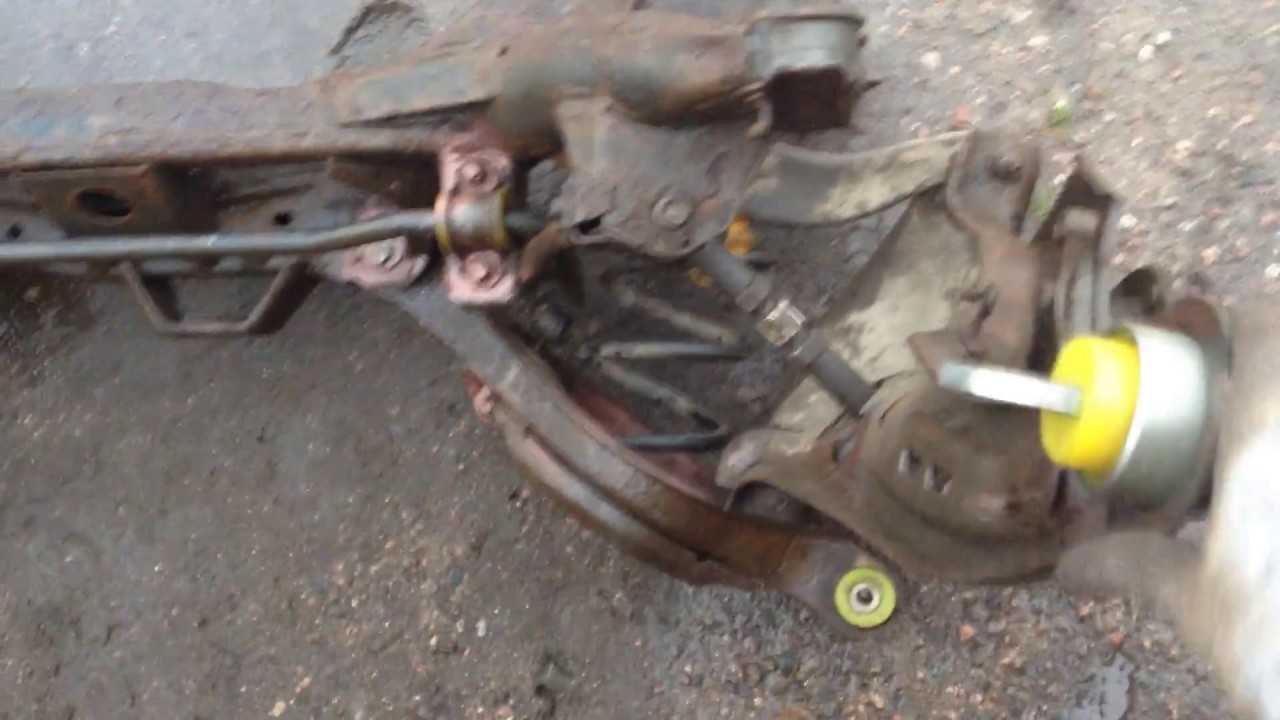 с другом вечером поехали в гараж. Начали разбирать! Сначала открутил развальные рычаги (крепятся на двух болтах). Потом открутил нижний поперечный рычаг(кастрюлю)! Откручивайте аккуратнее, так как пружина может выстрелить! Откручиваем сначала стойку стабилизатора 1 болт. Далее нижний болт крепления к продольному рычагу(в этот момент пружина то и может выстрелить). Потом откручиваем развальный болт(у меня на удивление пошел очень легко). Последним я откручивал верхний поперечный рычаг. 2 болта один на продольном рычаге, второй на креплении стойки аммортизатора. Продольный же рычаг крепится к кузову на 2-х болтах и одним к стойке. И не забываем открутить датчик АБС и суппорт.На все про все у нас ушло 3 часа! Некоторые болты пришлось отогреть газовой горелкой, после чего они легко пошли.