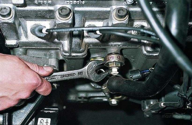- датчик откручивается при помощи торцевой головки на 27 и трещотки. Возможны проблемы со срыванием его с места. В этом случае, понадобиться использовать дополнительный рычаг;