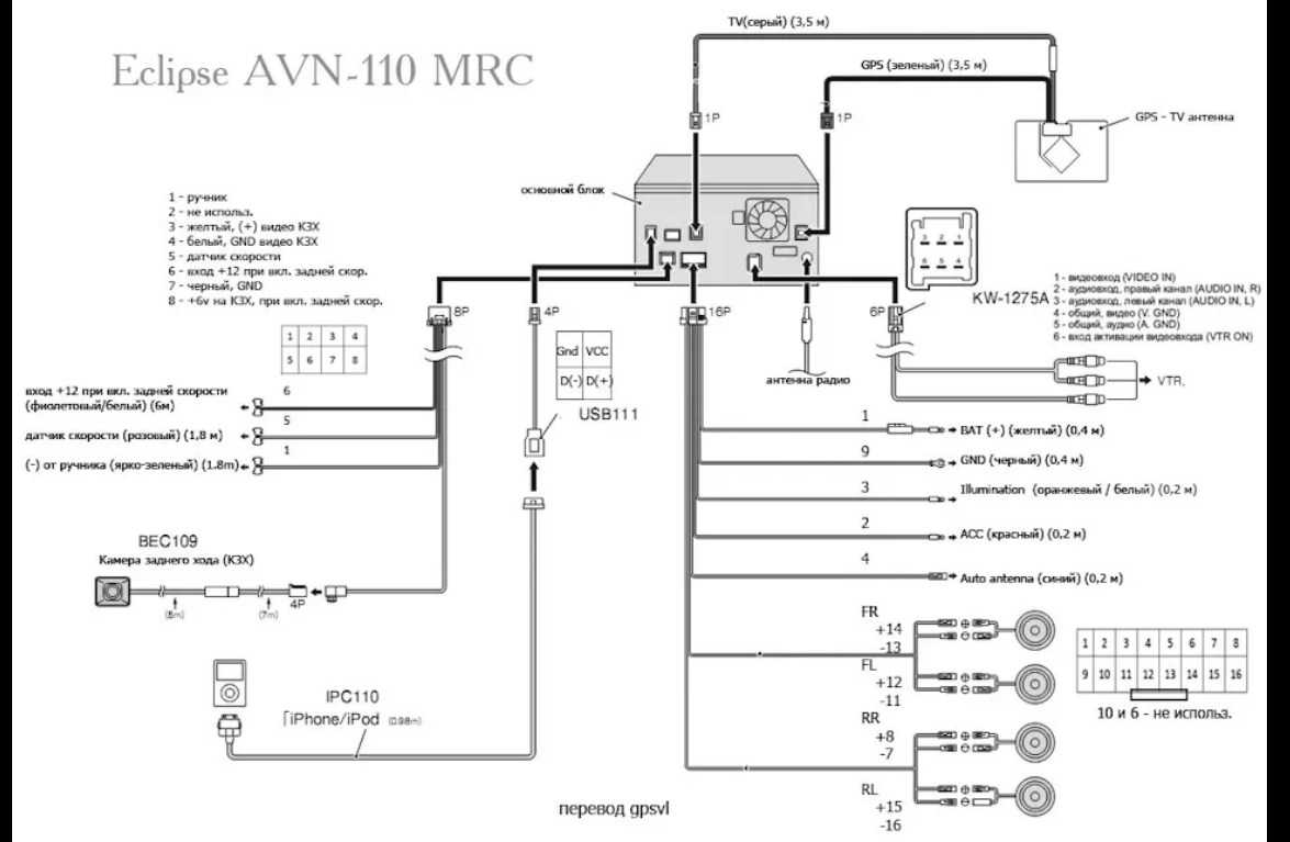 Распиновка магнитолы Eclipse — avn-110-mrc