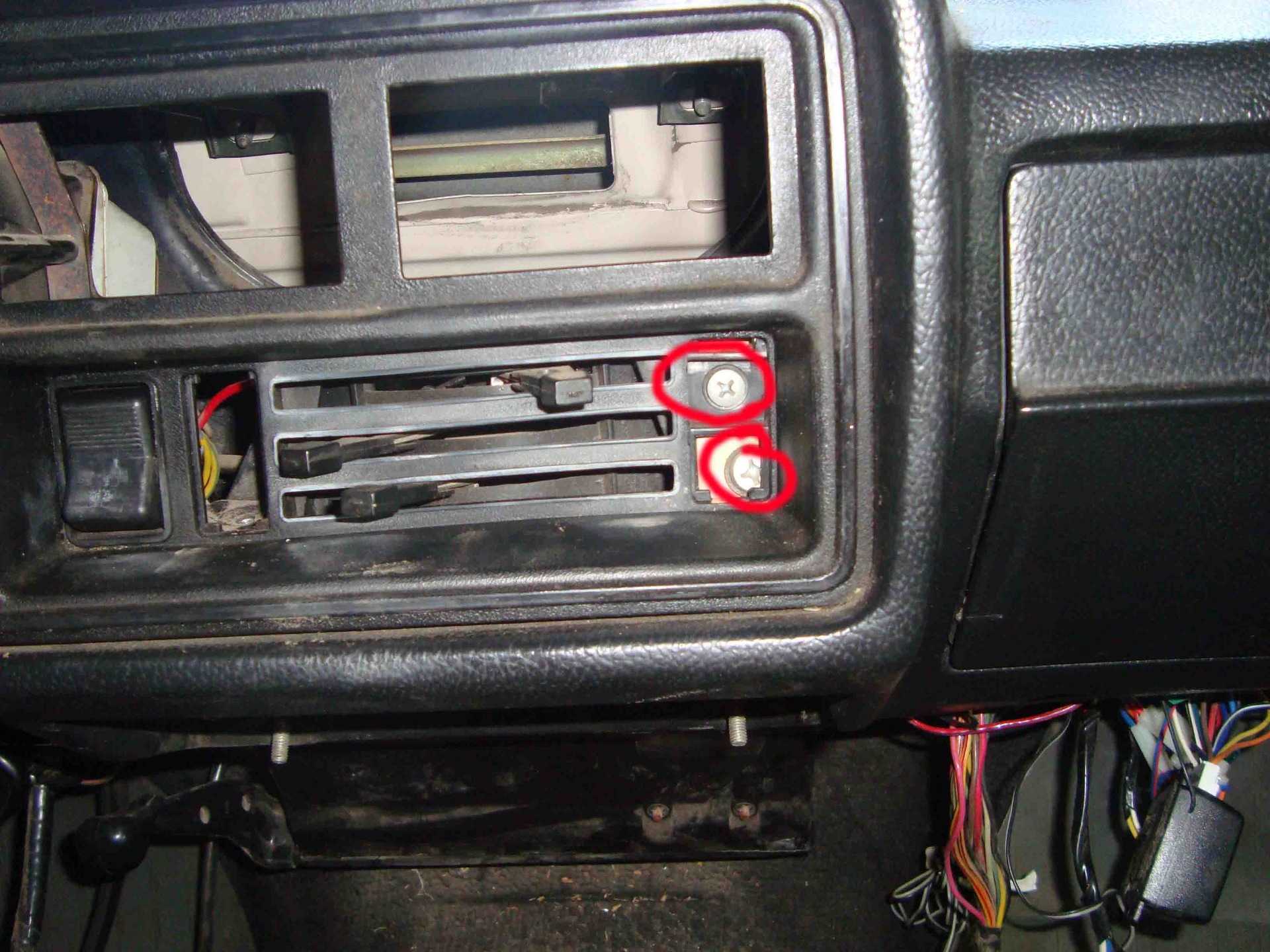 выкручиваем саморезы, которые вы сразу же увидите под переключателями и болты, предназначенные для фиксации главной консоли торпеды