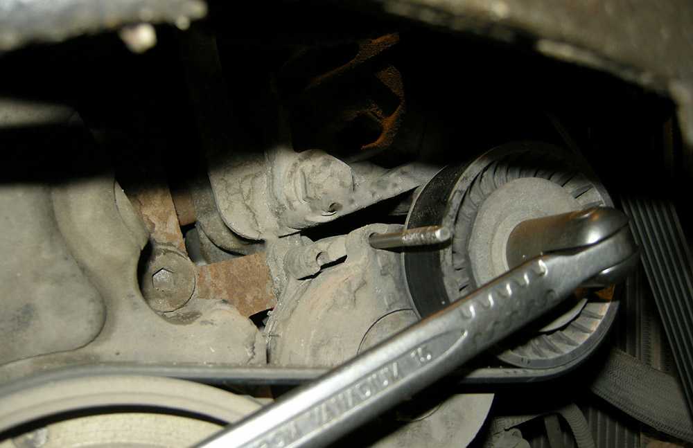 - Используя нужный инструмент, ослабьте натяжение ремня привода генератора (обычно это делается при помощи специального ключа или рычага).