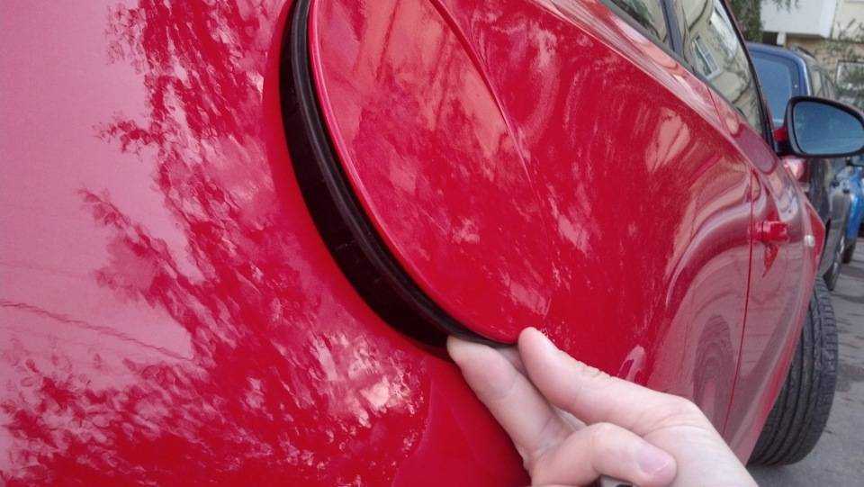 - Чтобы снять крышку бензобака, необходимо нажать на защелки непосредственно на крышке и вытащить ее.Он демонтировал люк бензобака с автомобиля.