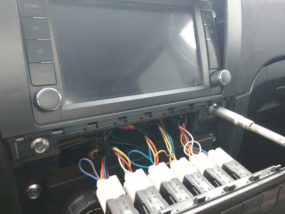 Далее выкручиваем 4 болта крепления самой магнитолы и можно вынимать её отсоединив все разъёмы.
