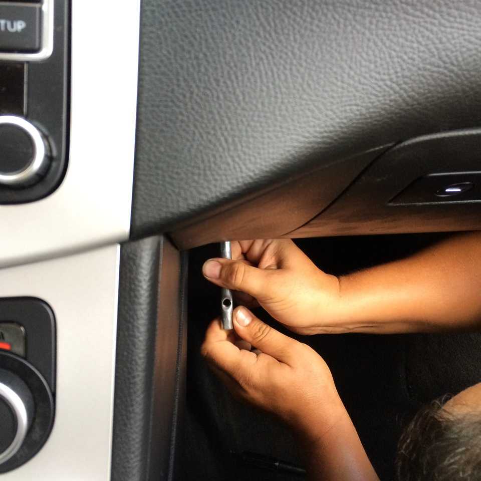 Следующий шаг — открутить 3 самореза внизу бардачка.