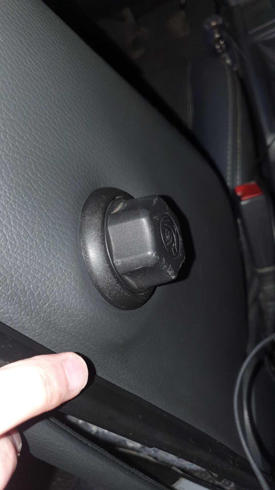 - Первая находится у зеркала заднего вида. Убрав ее, человек должен обнаружить три пистона. Снимаетсядовольно просто: заглушку треугольной формы необходимо подцепить отверткой. Проблем никаких не должно возникнуть, ибо защита легко отходит от места крепления. Совет: чтобы не поцарапать, повредить пластмасс — обмотайте отвёртку изолентой.