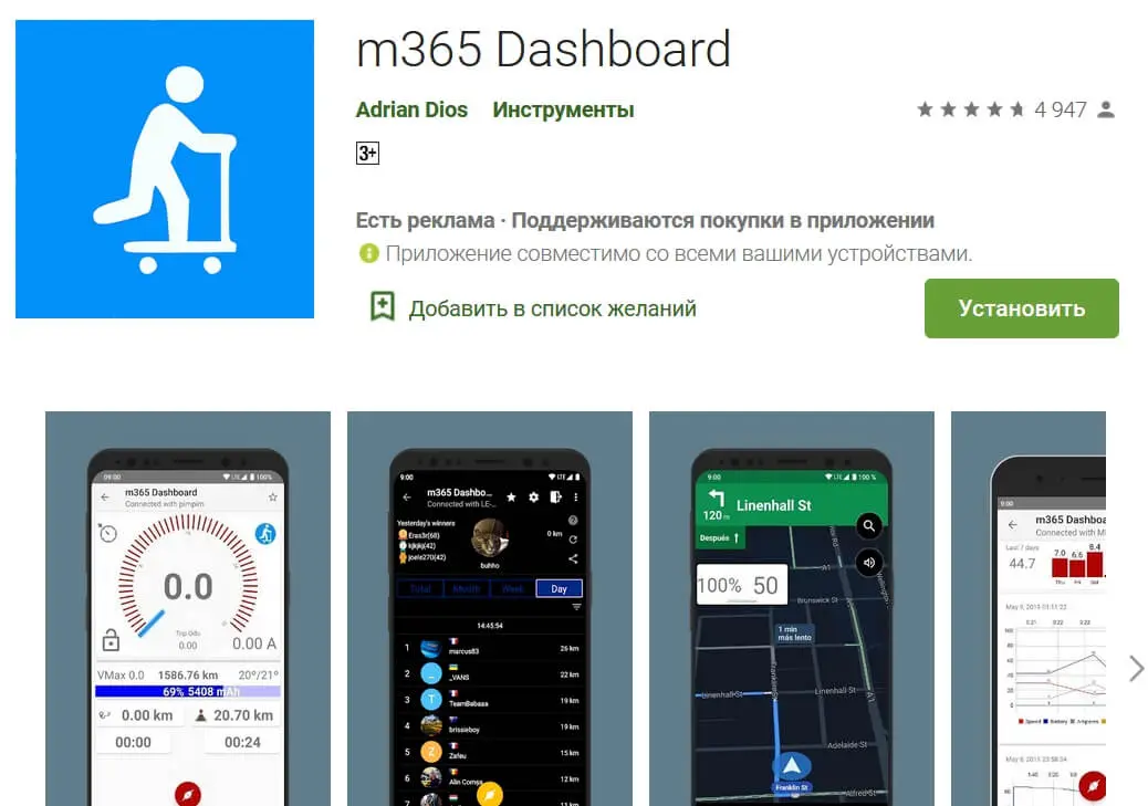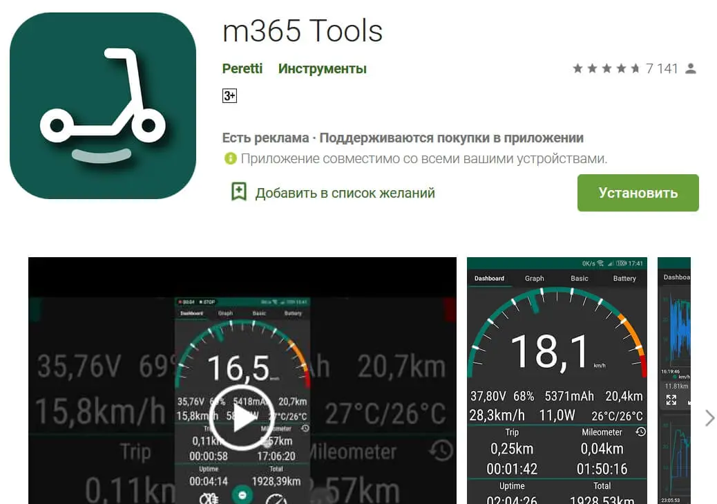 Утилита разработана для электротранспорта Xiaomi M365, но подключить к ней вполне возможно устройства иных производителей. На главном экране приложения выводятся данные о том, какую скорость развивает электросамокат на максимуме и каков средний показатель. Для этого не требуется подключение к интернету. Дополнительно программа самостоятельно создает графики с информацией о скорости.