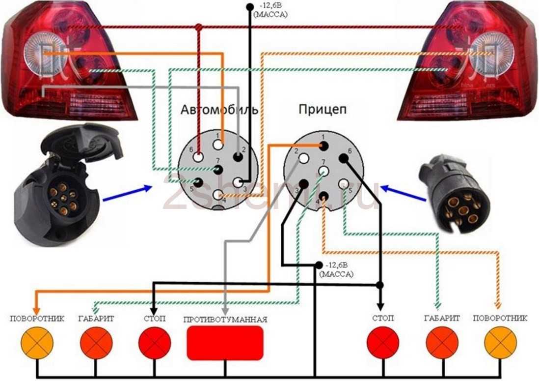 Схема подключения розетки фаркопа к автомобилю через разъем 13-pin: