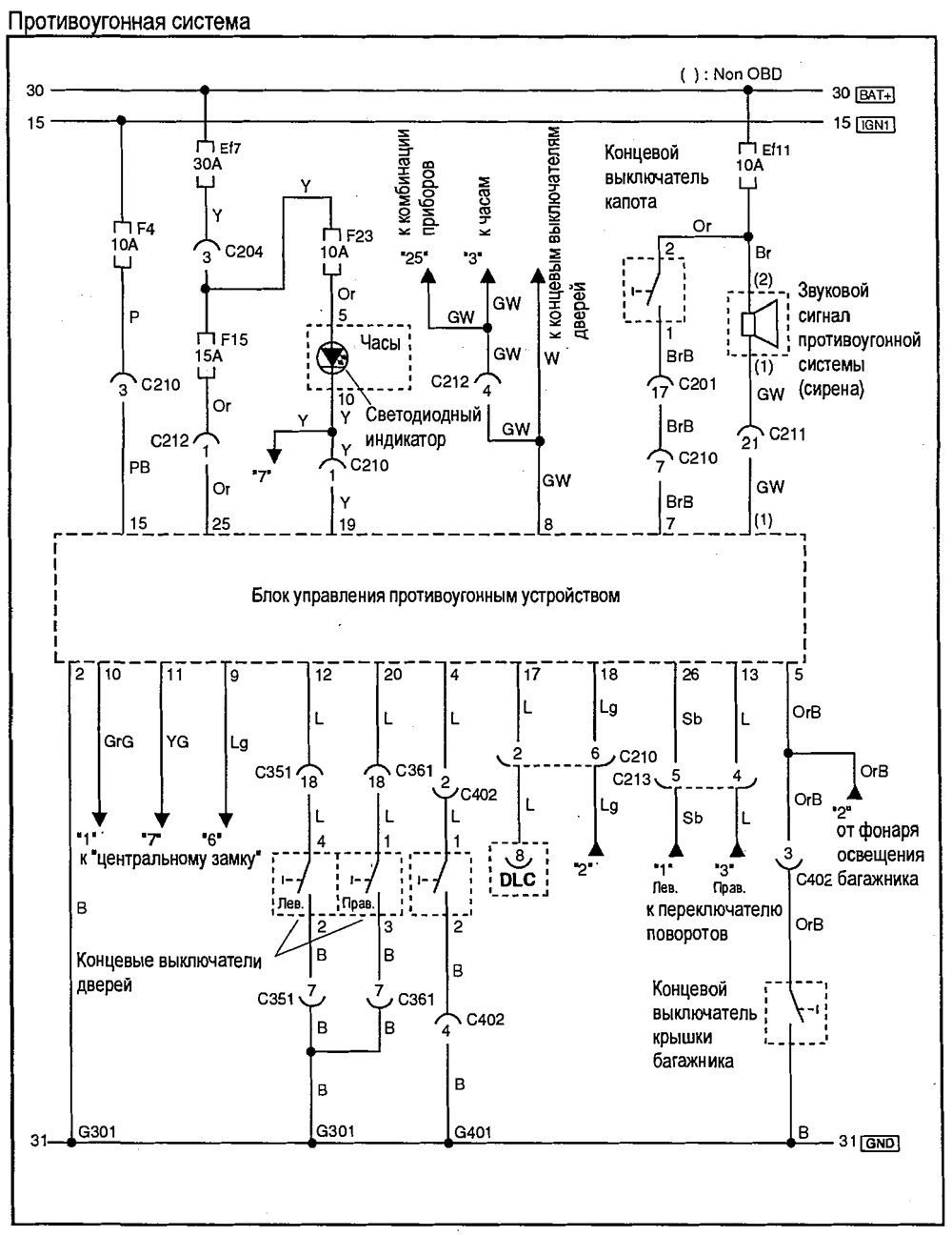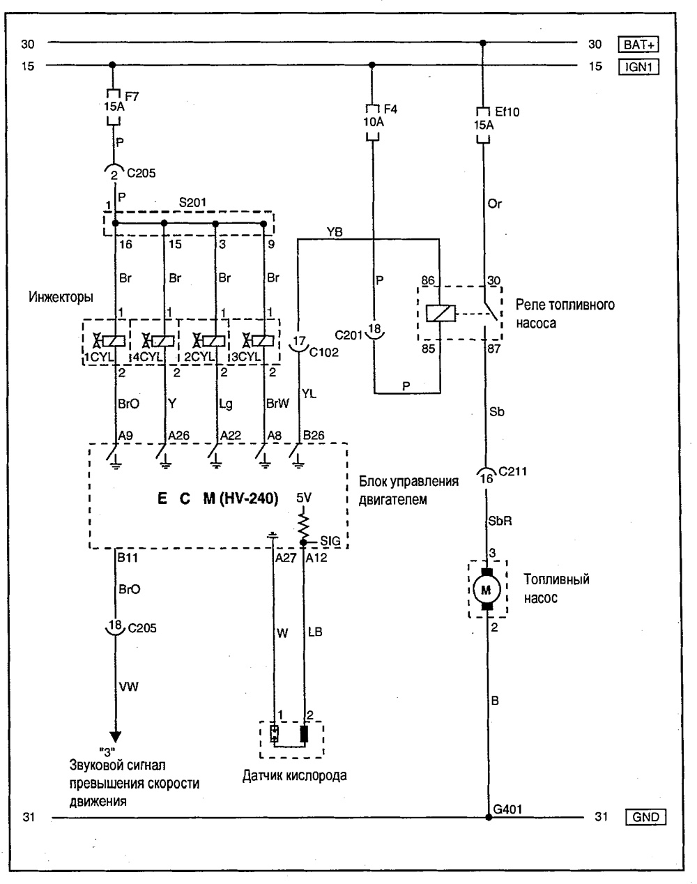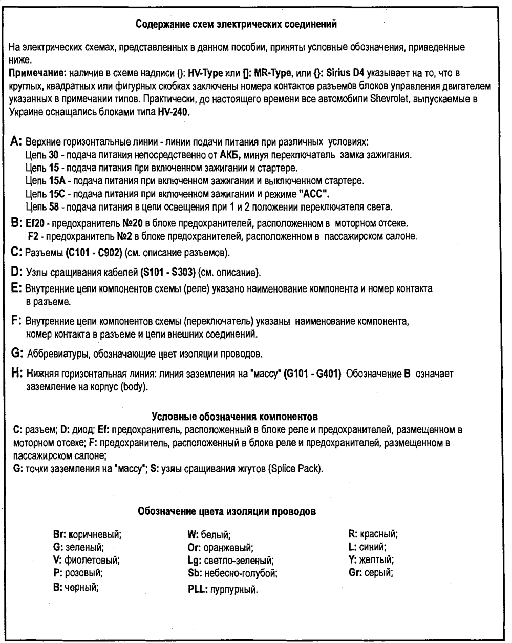 Схемы электрооборудования автомобилей Шевролет Авео 2003г. (Chevrolet Aveo)
