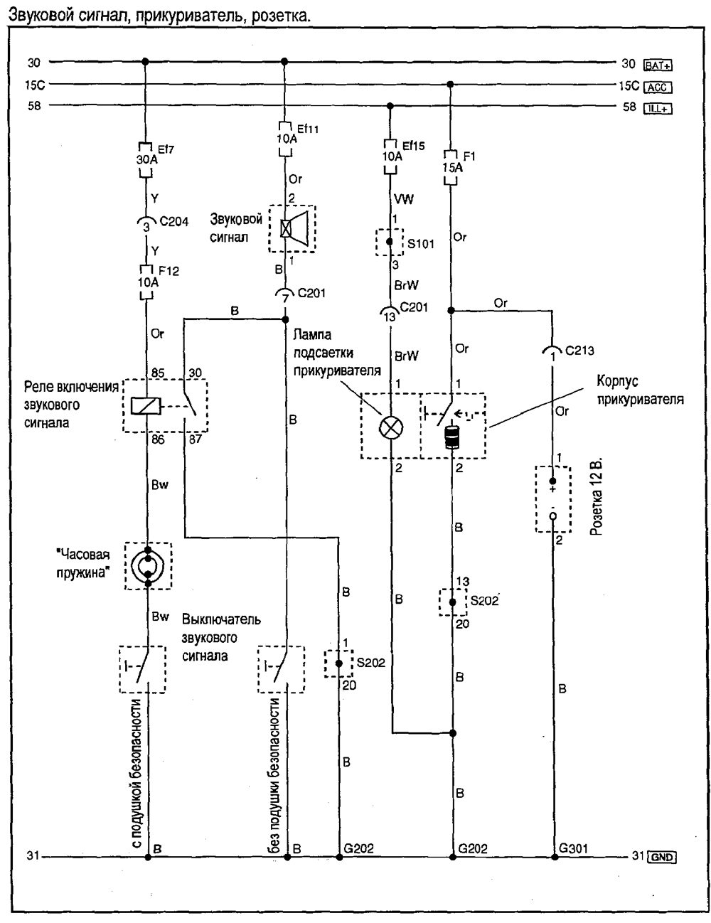 Звуковой сигнал, прикуриватель,розетка