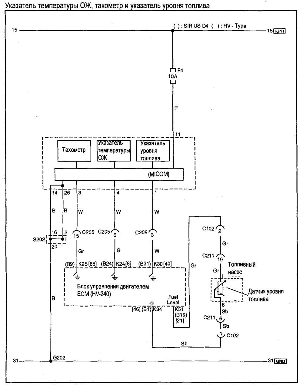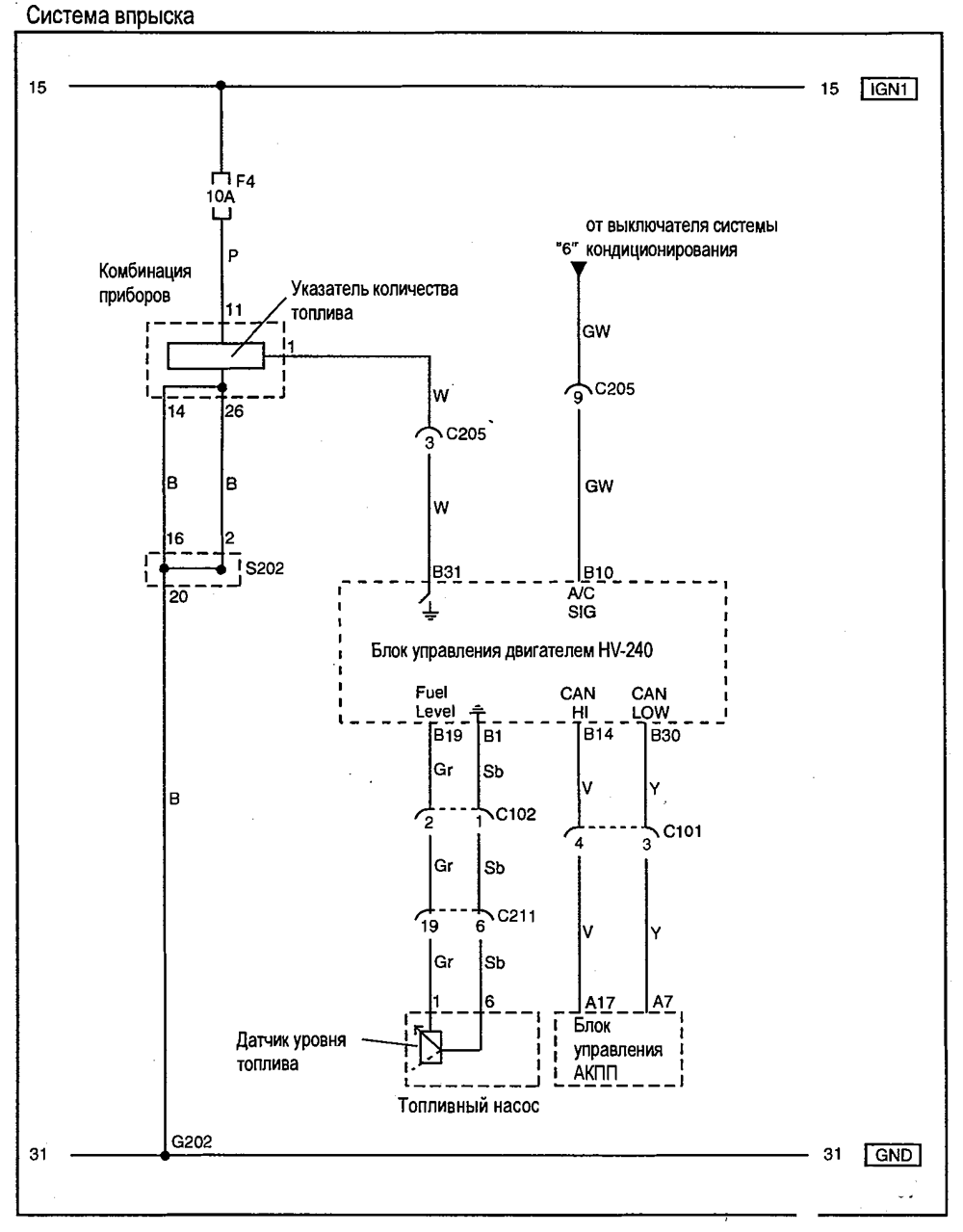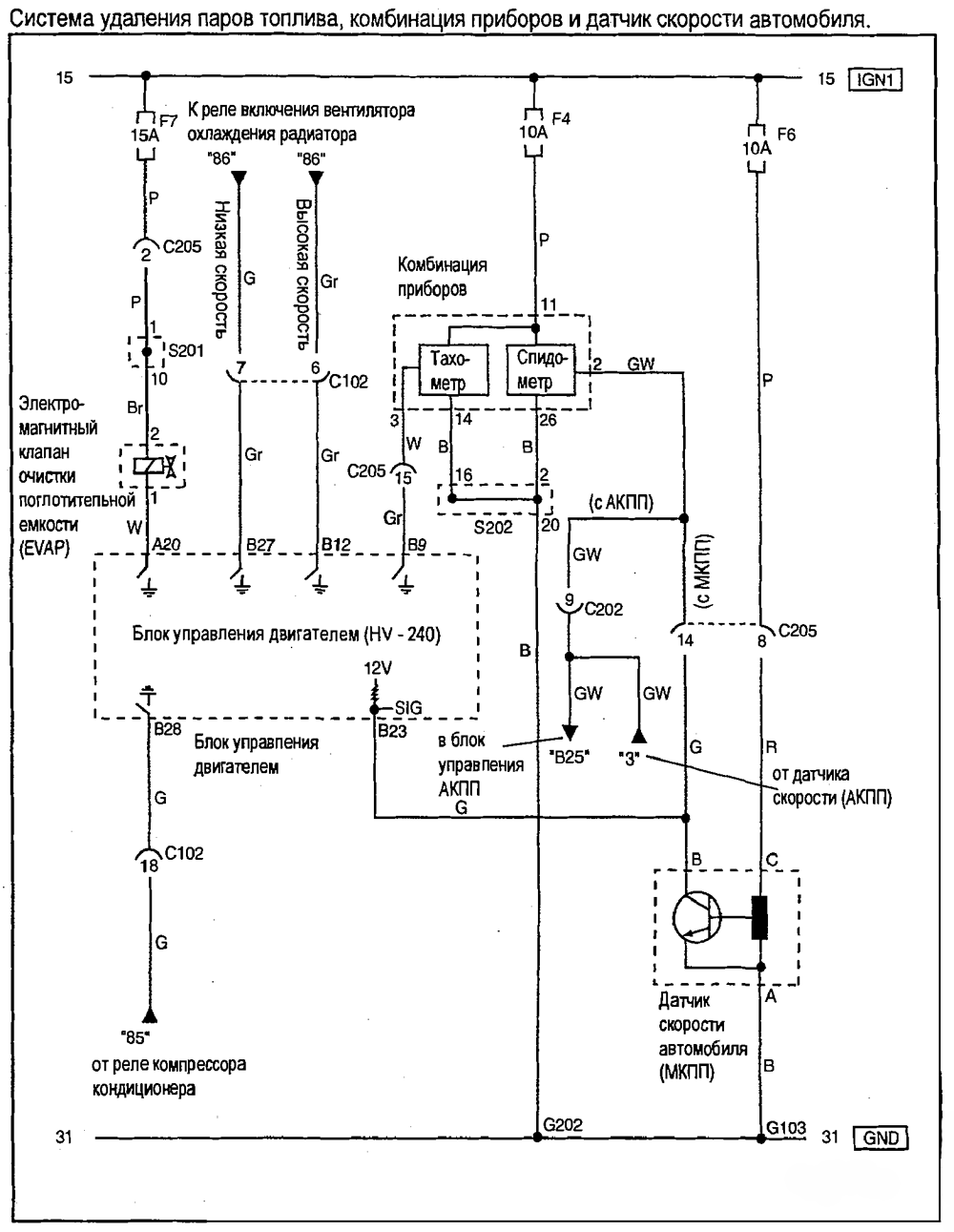 - Система удаления паров топлива,комбинация приборов и датчик скорости