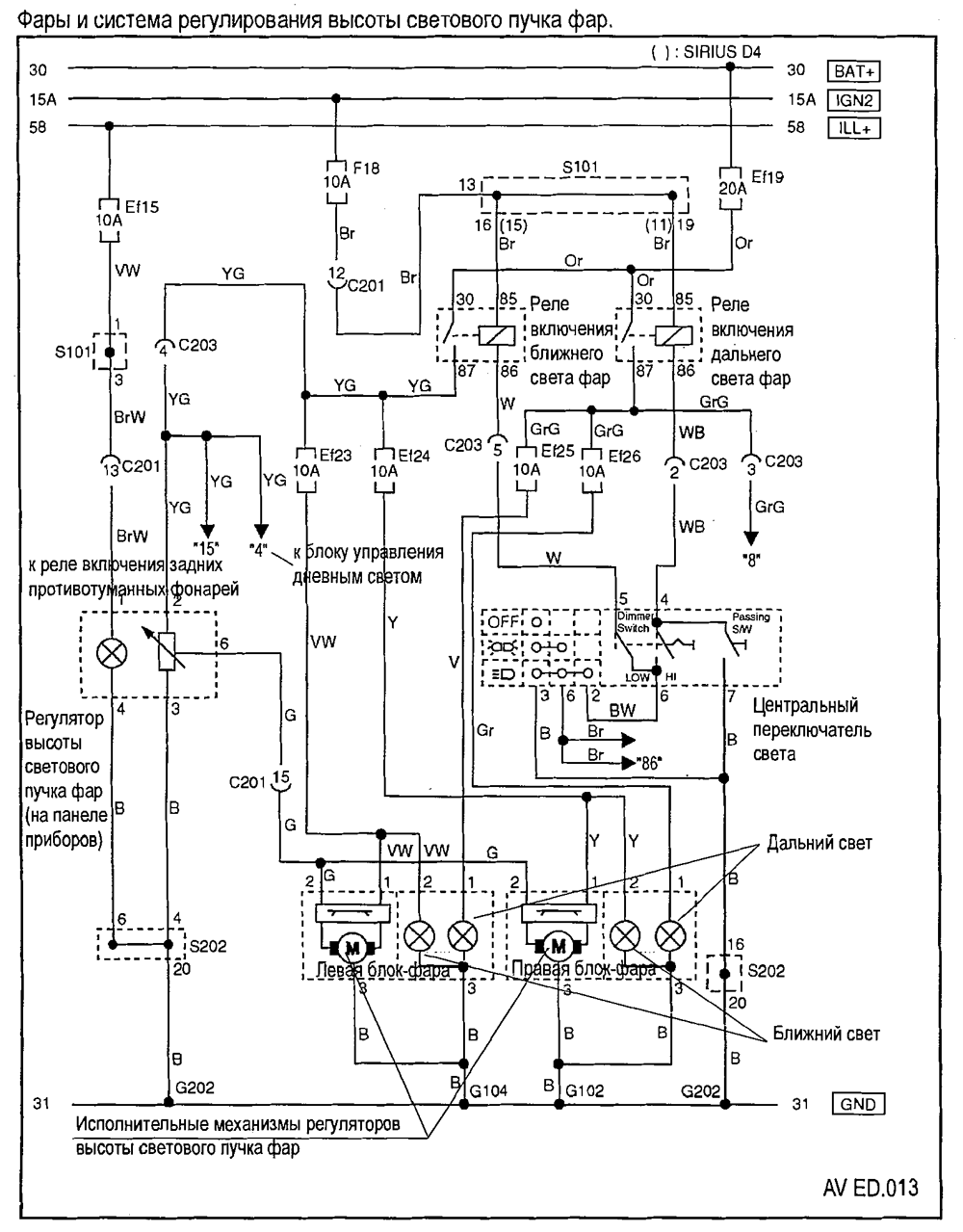 Фары и система регулирования высоты светового луча фар