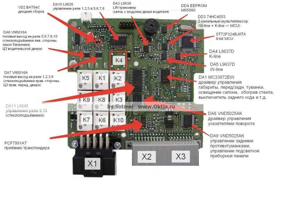 Дешевле, но значительно дольше длится ремонт, когда под удар попадает блок кузовной электроники. Диагностировать неполадку можно только в условиях сервисного центра. Длительность связана с тем, что если блок управления двигателем можно заменить как единое целое, то с электроникой надо менять часть проводки. Перепады напряжения или простое замыкание способны вывести из строя определенный сектор. Первым об этом скажет блок управления светом.