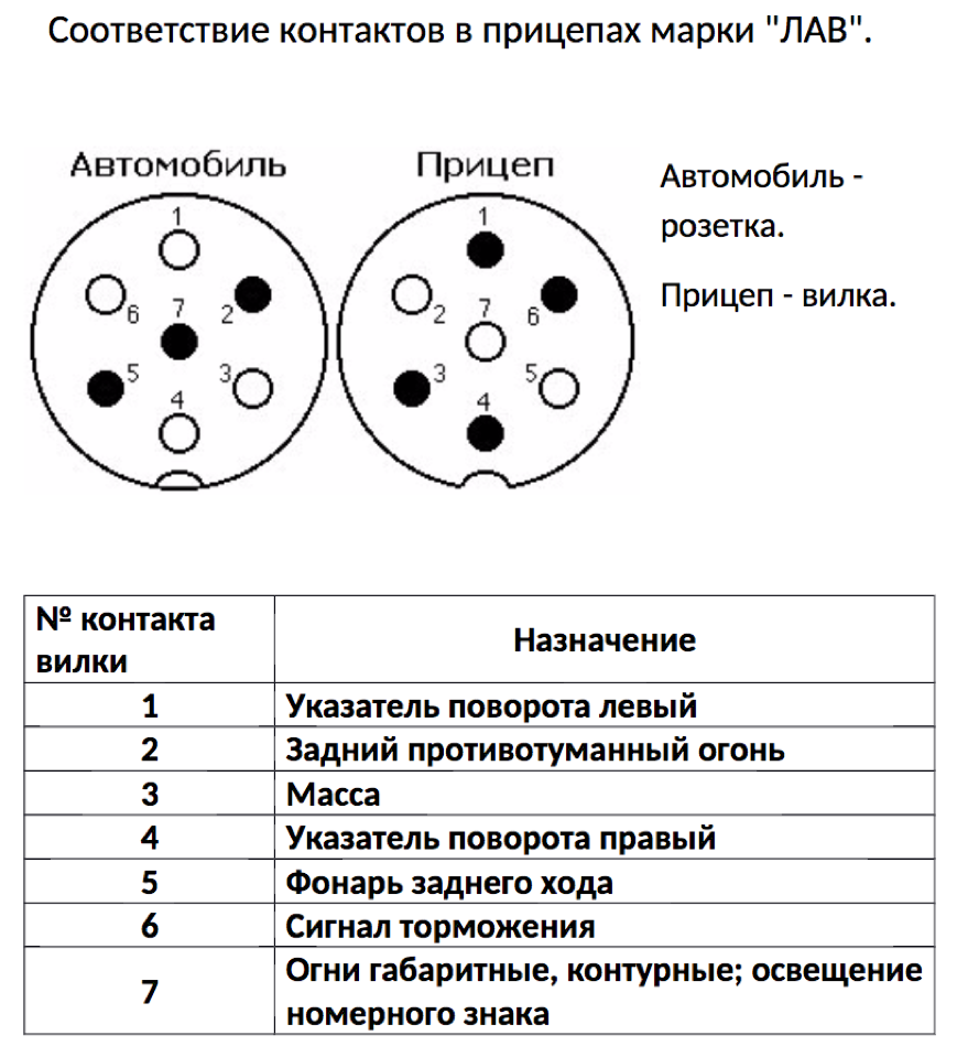 Посмотрите на картинке разъем фаркопа. Выключение не составит особой сложности, особенно если имеется универсальный составляющий элемент, представляющий собой разъем фаркопа. Очень удобно производить соединение в том случае, если вилка и розетка совпадают по разъемам. Соответственно, розетка, состоящая из семи контактов, должна подключаться к семиконтактной вилке . В таком варианте можно будет производить обычное подключение, не забывай совмещать нужные гнезда с соответствующими розетками.
