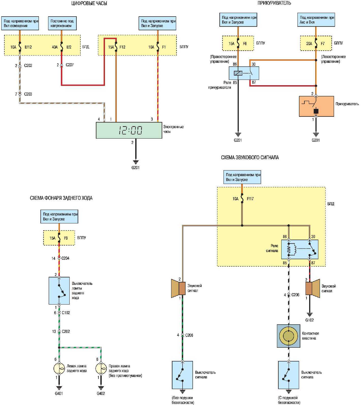 Схемы электрооборудования автомобилей Дэу Матиз (Daewoo Matiz)