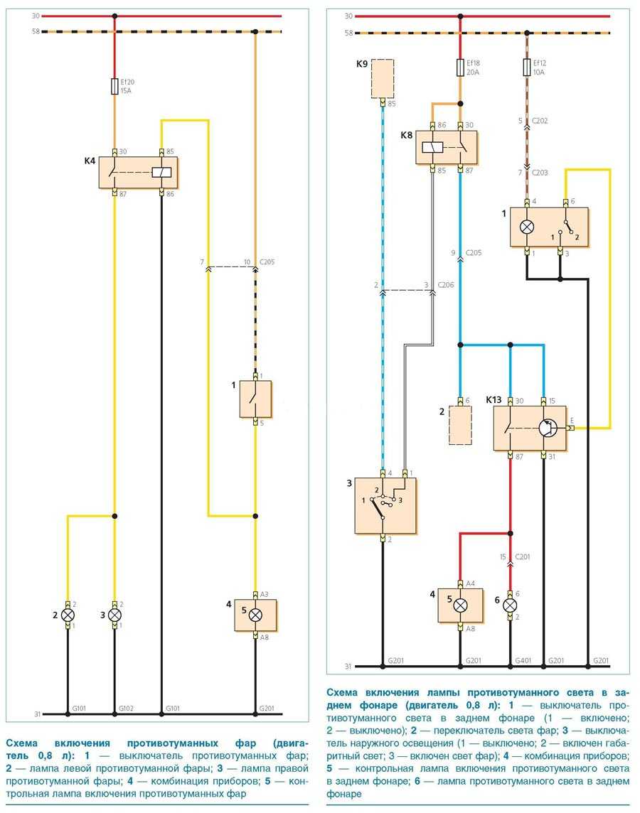 Электросхема Daewoo Matiz 0,8 литра для включения противотуманных фар и противотуманок в заднем фонаре: Такие неисправности обычно связаны с некорректной работой АКБ или генератора, реже — дополнительных устройств. М и второго М?