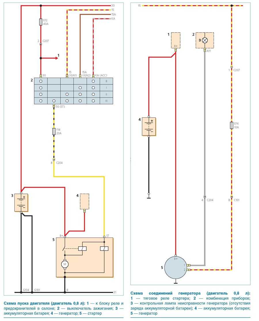 - Электросхема генератора и стартера (двигатель 0,8л)