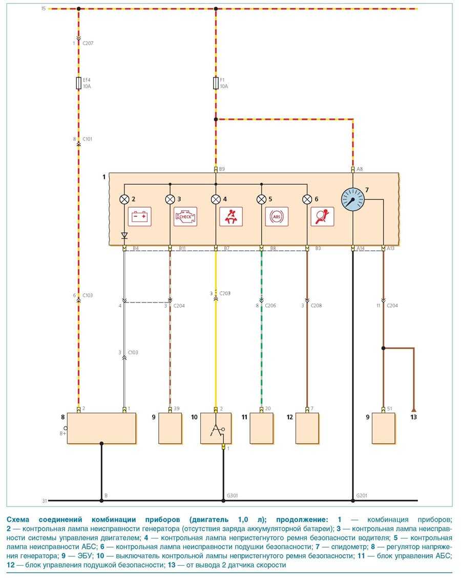 - Комбинация приборов (двигатель 1,0л, продолжение)