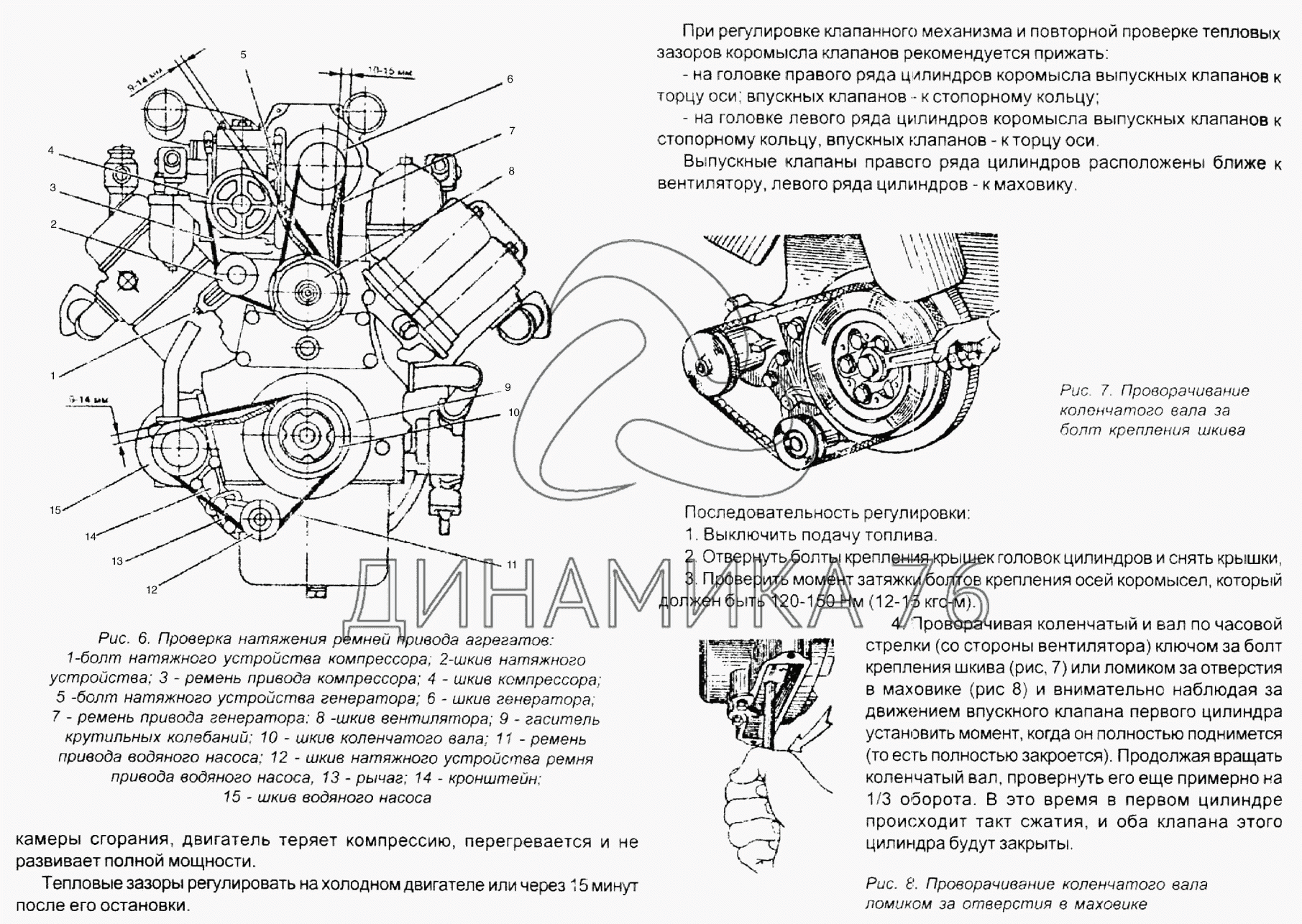 Вкладыши ЯМЗ, шатунные и коренные — разъемные верхние и нижние регулировка зазоров клапанов ямз 536 взаимозаменяемывыполнены из стали с рабочим слоем бронзовым напылением. Маховик ЯМЗ регулировка зазоров клапанов ямз 536 из серого чугуна, динамически сбалансирован, крепится болтовым соединением к хвостовику коленвала. Сверху на маховик напрессован зубчатый венец обод для вращения стартером. Гаситель крутильных колебаний ЯМЗ крепится к передней части коленчатого вала, это точное изделие жидкостного типа, чувствительное к механическим повреждениям.