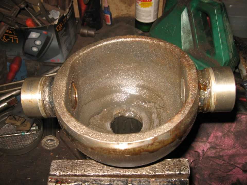 При замене подшипникового шкворня удаляют старые чашки в виде сферы, выполняют зачистку поверхности чулка и при помощи сварки приваривают новые втулки, которые изначально необходимо правильно выставить, чтобы не допустить перекос.