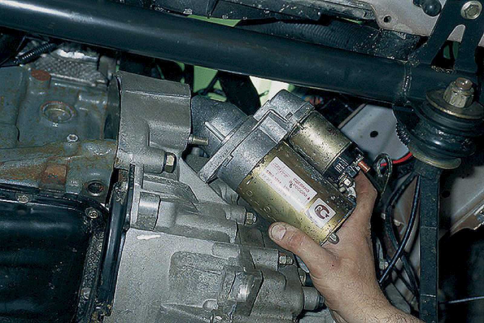 В отсутствие гаража, ямы или при внезапном отказе электростартёр можно снять через капот. Особенностями процесса являются: