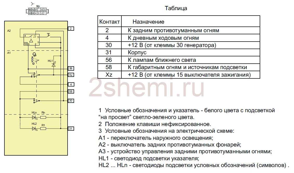 Проверить переключатель можно мультиметром в режиме омметра. Коммутация выводов переключателя показана на общей схема электрооборудования автомобиля