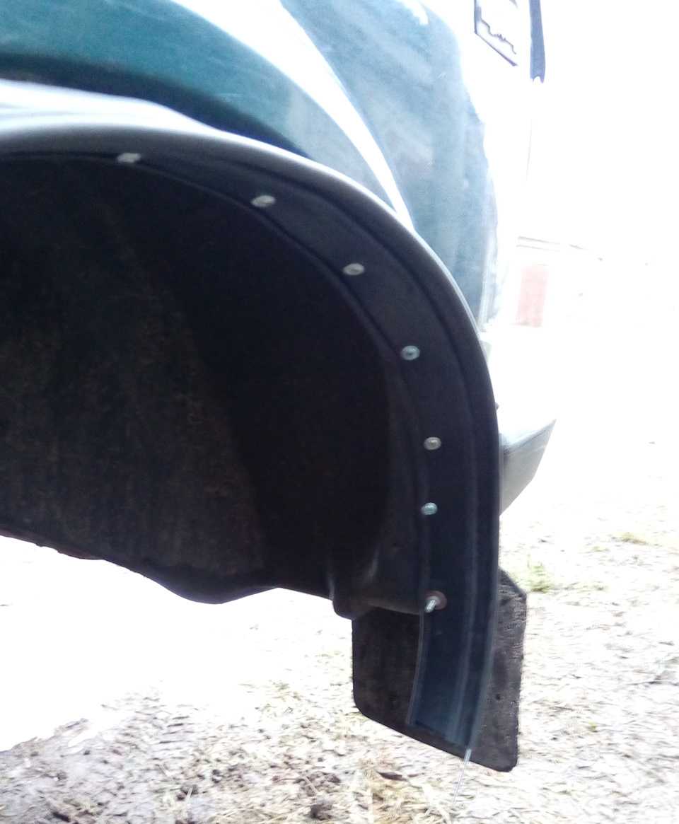 Поставил себе проставки для лучшей устойчивости, да и резина шире штатной… короче, торчат колёса за арки … машина как чушка постоянно — сам себя забрызгиваю влёт. Ставил просто расширители из ленты МБС резины 5 мм. — стрёмно вообще, резина волнами идёт, под неё грязь залетает, постоянно потёки… Думал с пластика поставить — да пластик ломается, не раз видел у друзей/знакомых, только где зацепил — всё, кирдык, сразу треснул.