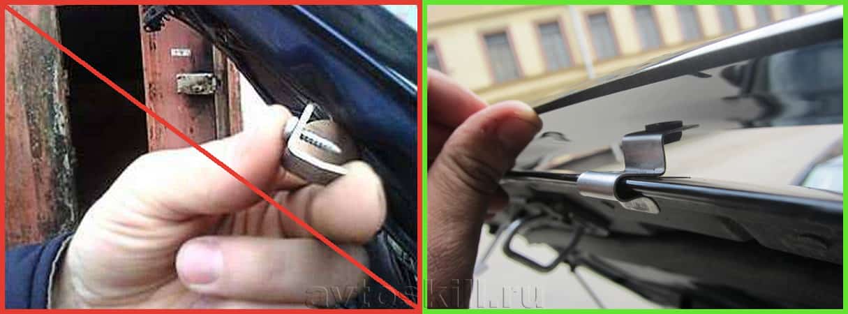 Неправильные примеры того, как крепить дефлектор на капот