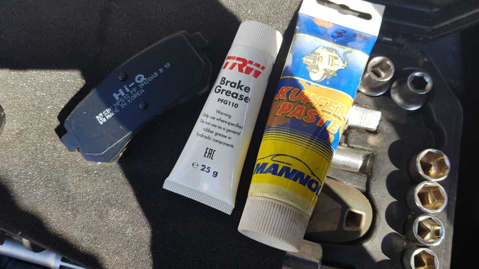 Замена задних колодок, да как и передних, не замысловатая и простая процедура, простая, когда Вы сами правильно делали профилактику тормозного суппорта ранее, да-да, бо заморачиваться на СТО я думаю сильно никто не будет и закладывать нужную смазку за баснословные деньги тоже думаю никто не будет Было много планов на день, а именно замена задних колодок, масла и капитальная уборка салона, НО на первом же суппорте наглухо закисшие направляющие, в итоге одна колодка почти в ноль, второй процентов 50.Греть как типа нужно, не вариант, бо запасных направляющих с резинками нету. В итоге задуваю постепенно под резинку вд40 и пробуем крутить, долго и нудно, постепенно и с постукиванием вышли… оптимально мощные плоскогубцы, крутить и тянуть… все мою очистителем карбюратора и вдшкой, пальцы, резинки и место куда входят. Смазываю места соприкосновения колодок смазкой для тормозных систем и смазываю пальцы смазкой TRW PFG110, 25 грамм хватает как раз на весь авто.