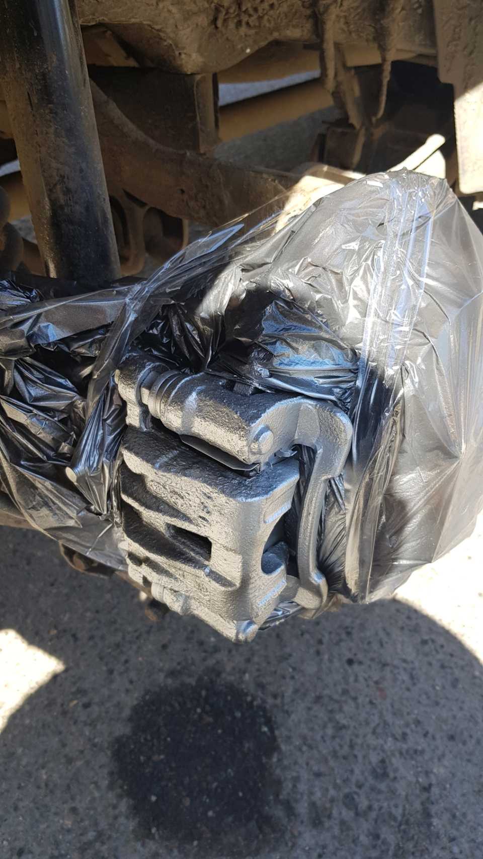 После замены задних колодок ))) без вариантов пришлось разбирать и передние суппорта, колодки там почти новые с дисками, там ситуация была немного лучше, но тоже верхние закисшие были, заодно и суппорта спереди покрасил.Все добра, не болейте.