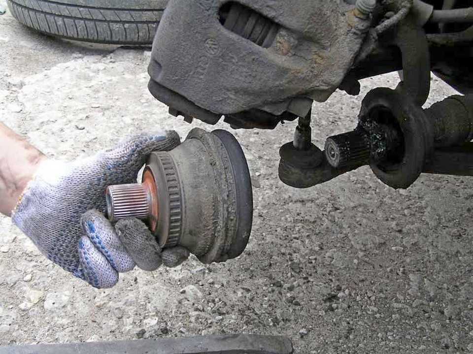 - Проверьте прочность посадки вала в коробке передач, потянув за корпус ШРУСа.