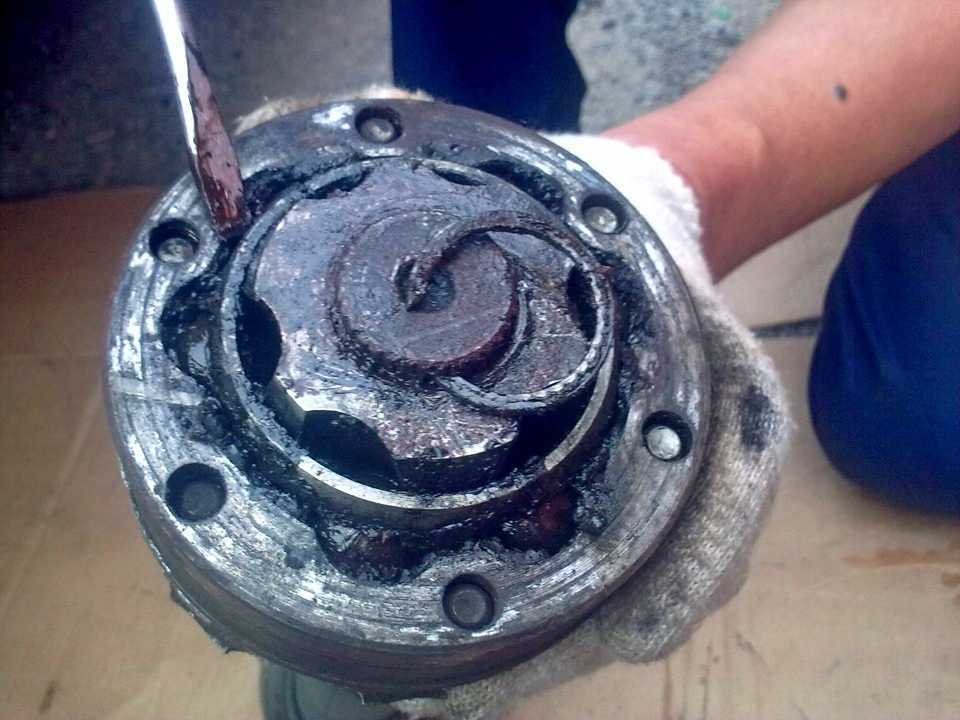 Если вы меняете только поврежденный чехол, максимально очистите ШРУС от смазки и грязи, осмотрите детали на наличие выработки, коррозии, вмятин и задиров. Если повреждения есть, шарнир придется заменить.