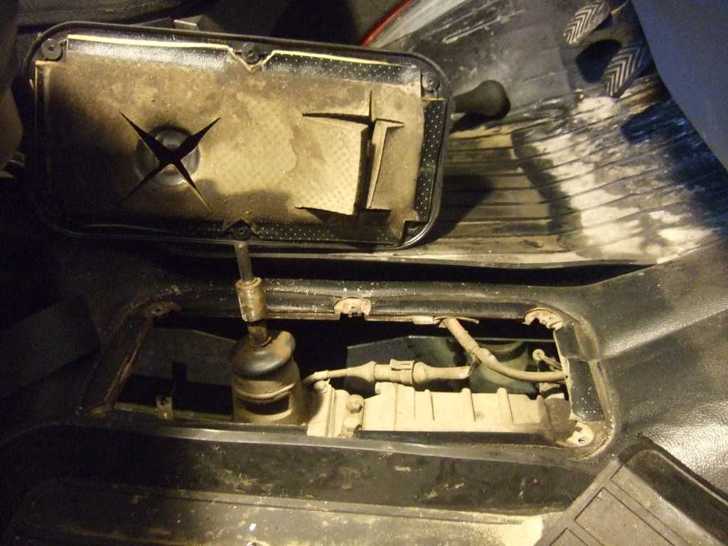 Ладно. Дальше нам необходимо раскрутить лючёк в полу кабины и рассоединить рукоятку переключения передач от КПП.