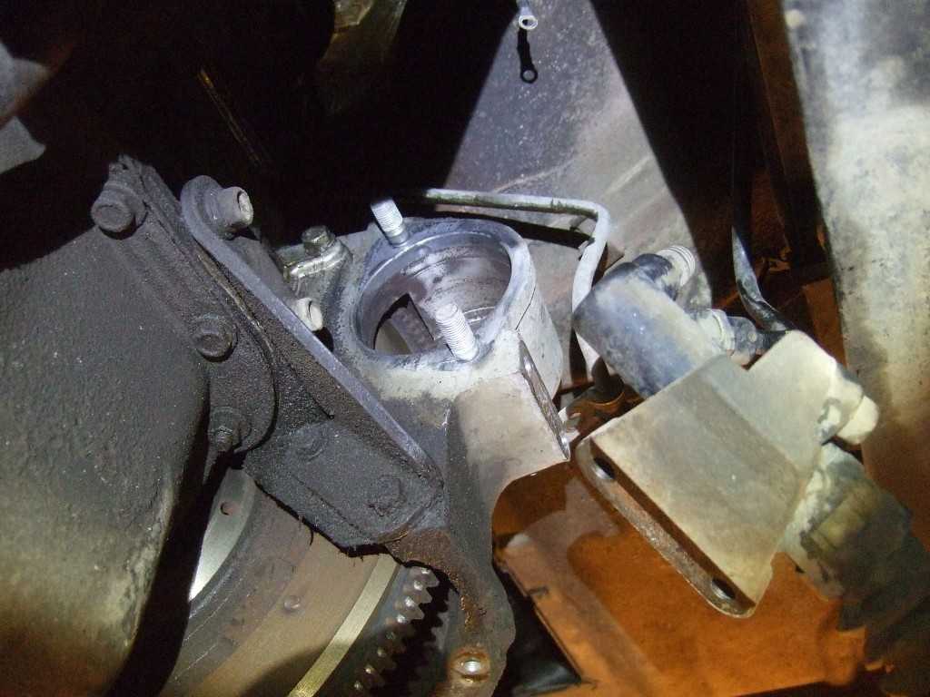 А, далее надо было открутить болты крепления колокола к блоку ДВС. Собственно я открутил все, кроме левого верхнего. Нет его возможности открутить, без опускания ДВС вниз. И всё тут. Чем думали конструктора, когда изобретали сие чудо — не понятно.