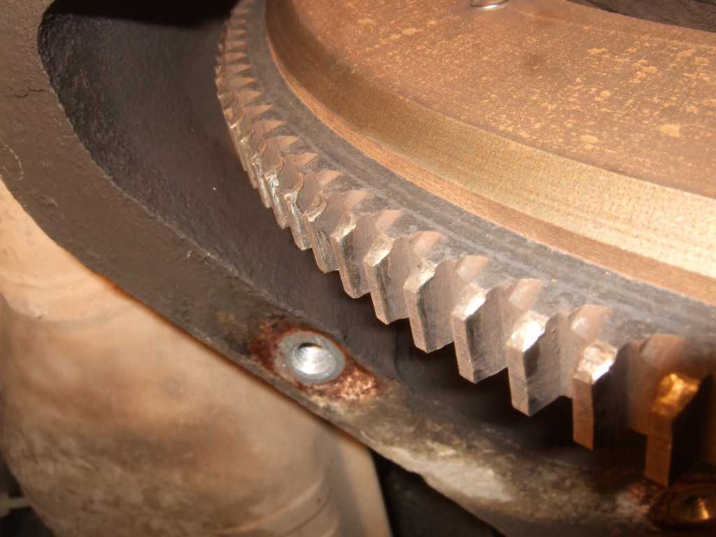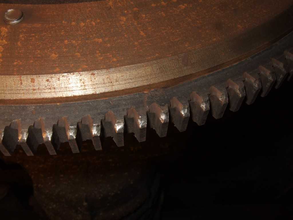 Собственно, сильного криминала нет, но видно, что заходная часть для бендикса стартера, сильно покоцана. Да и на венце присутствуют покоцки. В дальнейшем, при демонтаже маховика, у меня будет возможность получше продефектовать сам маховик.