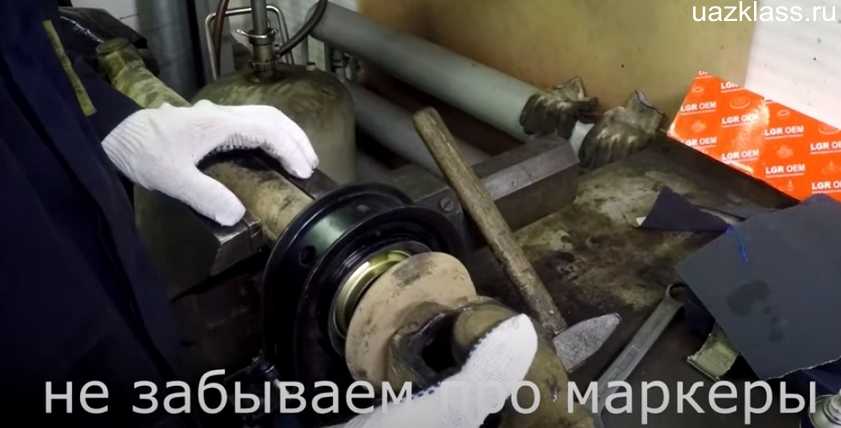 При сборке карданного вала не забываем о метках на корпусе механизма, не нарушаем последовательность установки деталей и порядок выполнения работ.