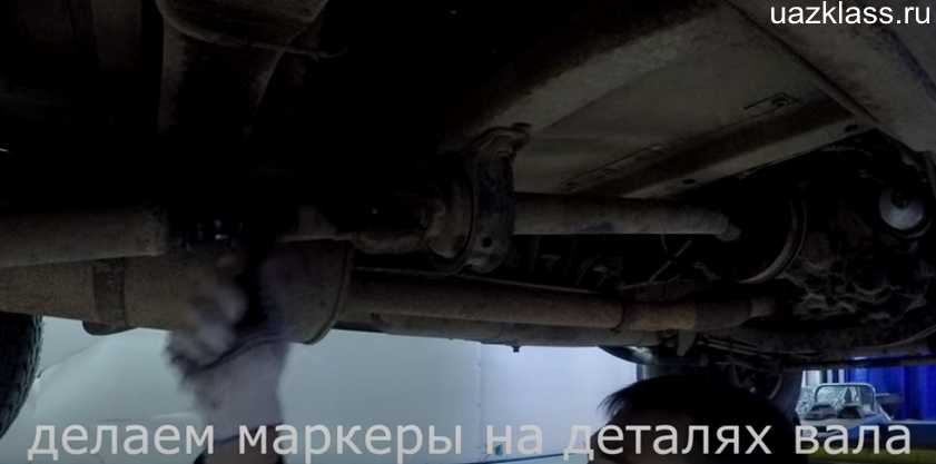 - Пометить яркой краской все съемные части карданного вала. В заводских условиях перед установкой детали на автомобиль производится балансировка механизма, и если пренебречь маркировкой сегментов, то биение и стук не прекратятся даже в случае замены подвесного подшипника.
