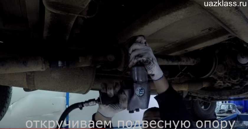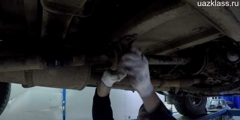 Последовательность выполнения демонтажных и монтажных работ по замене подвесного подшипника карданной передачи УАЗ Патриот: