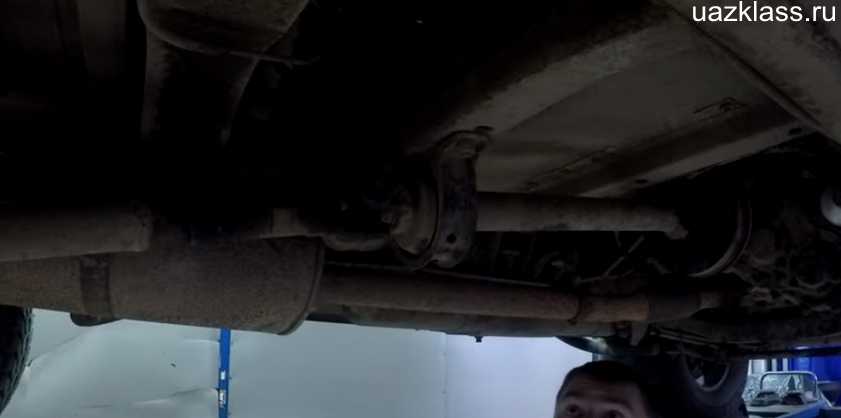 - После заезда автомобиля на яму или эстакаду нужно провести визуальный осмотр кардана. Убедиться в том, что появление посторонних звуков при движении машины было вызвано поломкой промежуточной опоры.