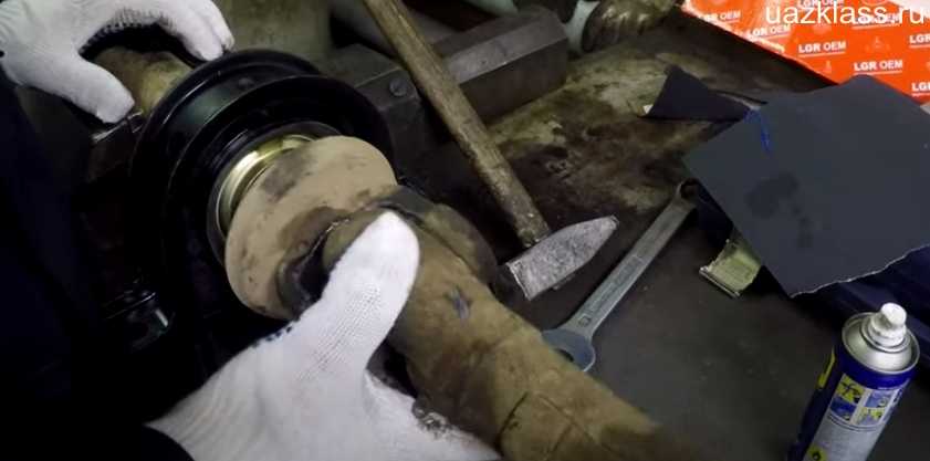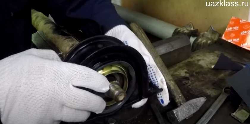- Когда старый подвесной подшипник карданного вала УАЗ Патриот снят, то на его место ставится новый. Ход работы точно такой же, но в обратном порядке.