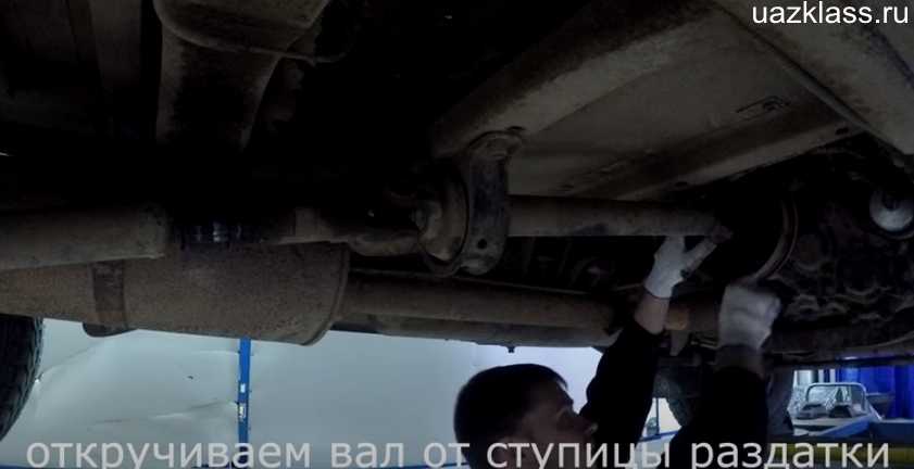 - Начните отвинчивать место, где задний карданный вал соединяется с раздаточной коробкой;
