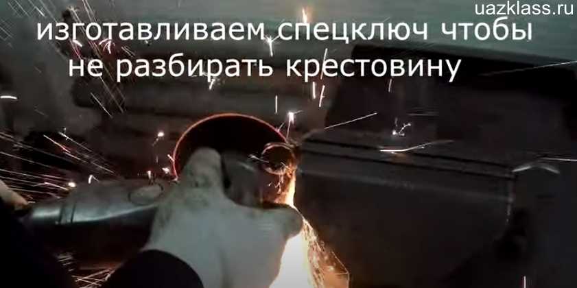 - Далее извлекается крестовина, которая находится рядом с ним. Снимается передняя часть кардана вместе с неисправным изделием.