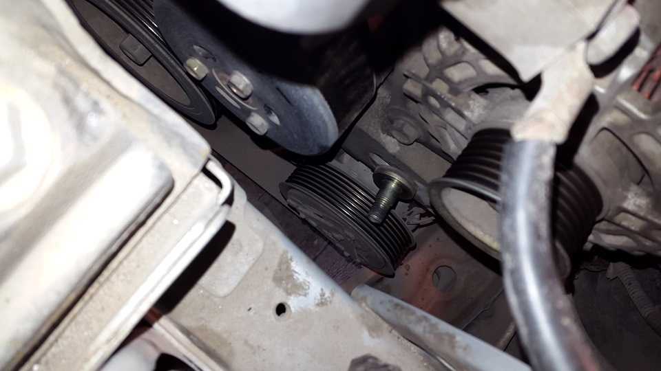 - уже под автомобилем открутить гайку ролика натяжителя ключом на 13 мм;