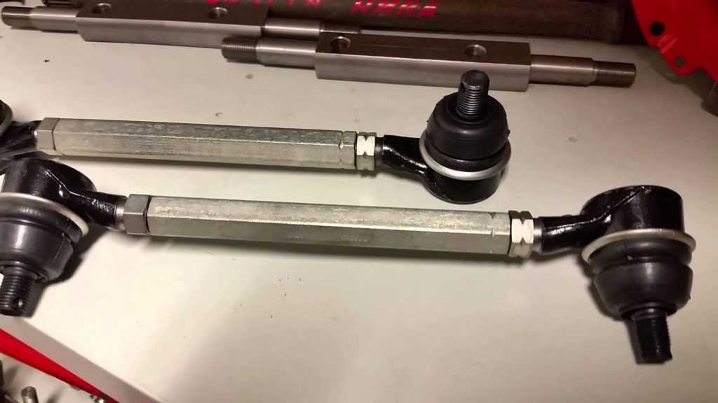 Устанавливаем боковую тягу так, чтобы к рычагу поворотного кулака крепился длинный наконечник.