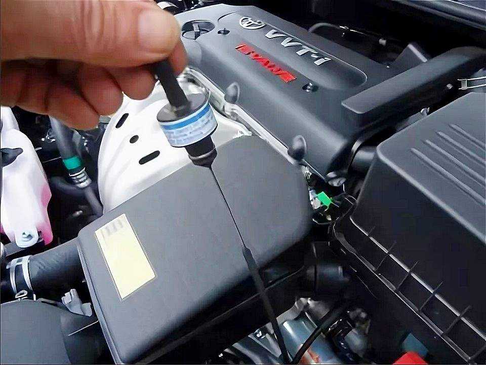 - вставить щуп на место, снова вынуть и проверить уровень.
