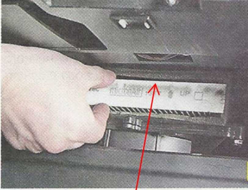 - Укладываем новый очиститель «Стрелка вниз», защелкиваем крышку, устанавливаем вещевой ящик на штатное место.