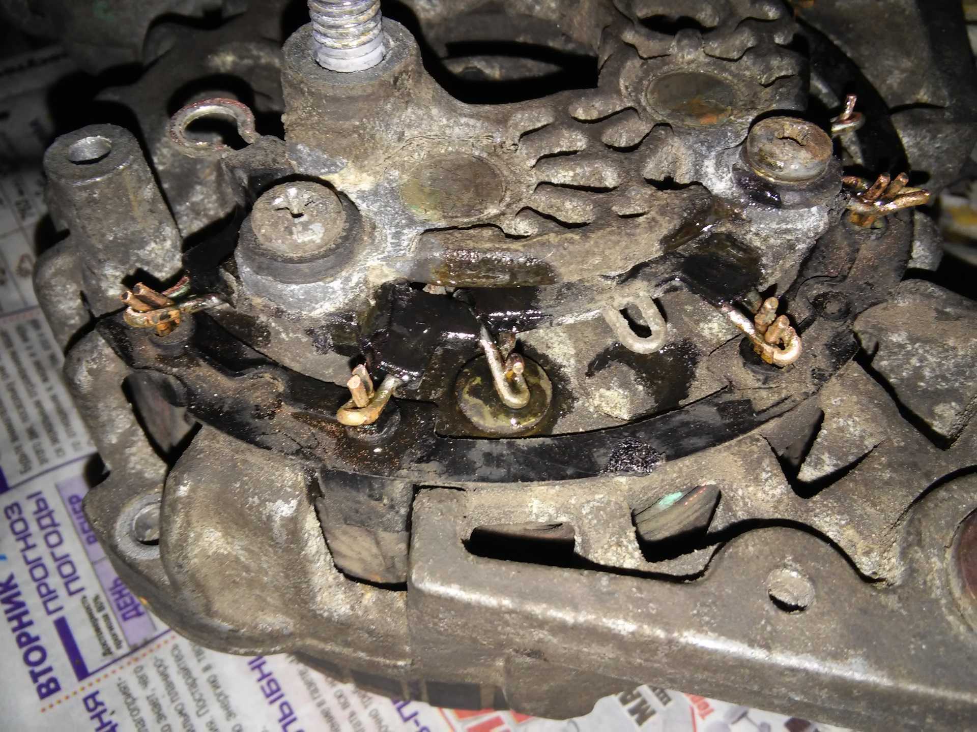 Лампочка индикации отсутствия заряда, правда, не загорелась почему-то, видать и релюшка на генераторе не работала как-. За ремонт генератора мне выкатили руб. Просто без машины не вариант. А вообще посмотрел я на разобранный генератор и мысль сразу мелькнула, что самостоятельно приобретя запчасти его можно отремонтировать на порядок дешевле. Вопрос к двум подшипникам на валу, один из которых под шкивом, второй внутри один электрик мне сказал, что может быть те, которые есть получиться смазать и всё с ними будет тип-топ, я в этом, правда, сомневаюсь, поэтому думаю, что новые надо брать.